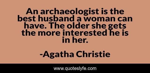 This page presents the quote "An archaeologist is the best husband a woman can have. The older she gets the more interested he is in her.". Author of this quote is Agatha Christie. This quote is about woman, best, husband,.