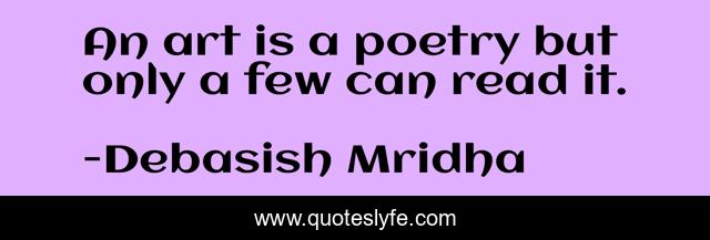 This page presents the quote "An art is a poetry but only a few can read it.". Author of this quote is Debasish Mridha. This quote is about life, love, knowledge, inspirational, intelligence, philosophy, wisdom, quotes, affection,.