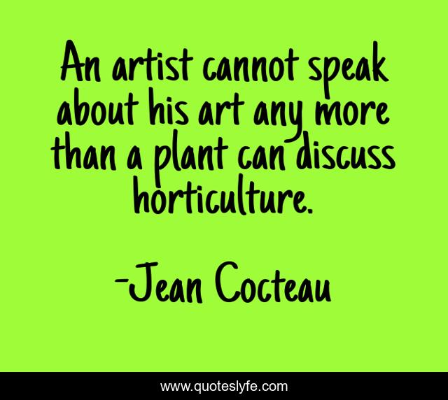This page presents the quote "An artist cannot speak about his art any more than a plant can discuss horticulture.". Author of this quote is Jean Cocteau. This quote is about plant, speak, artist,.