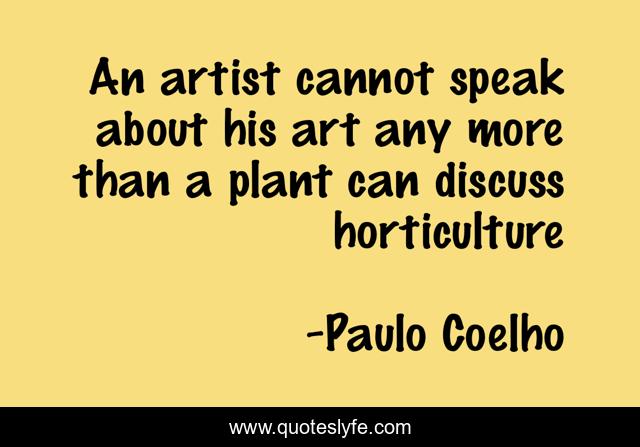 This page presents the quote "An artist cannot speak about his art any more than a plant can discuss horticulture". Author of this quote is Paulo Coelho. .