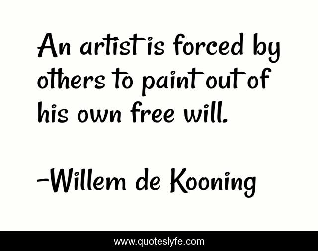 This page presents the quote "An artist is forced by others to paint out of his own free will.". Author of this quote is Willem de Kooning. This quote is about artist, free, free will,.
