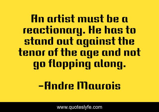 This page presents the quote "An artist must be a reactionary. He has to stand out against the tenor of the age and not go flopping along.". Author of this quote is Andre Maurois. This quote is about stand, artist,.