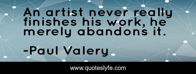 "Paul Valery Quotes." Quoteslyfe.com, 2025. Mon. 08 Dec. 2025. <https://www.quoteslyfe.com/quote/An-artist-never-really-finishes-his-work-318246>.