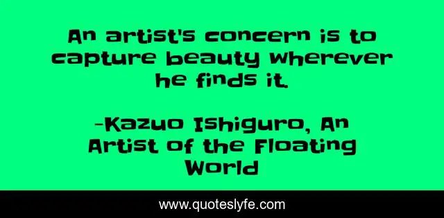 "Kazuo Ishiguro, An Artist of the Floating World Quotes." Quoteslyfe.com, 2025. Sun. 07 Dec. 2025. <https://www.quoteslyfe.com/quote/An-artist-s-concern-is-to-capture-204774>.
