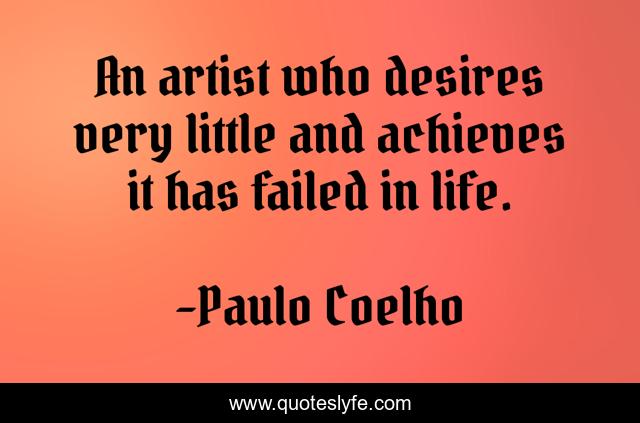 This page presents the quote "An artist who desires very little and achieves it has failed in life.". Author of this quote is Paulo Coelho. This quote is about achieving-your-goals, art, artists,.
