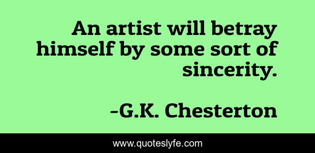 This page presents the quote "An artist will betray himself by some sort of sincerity.". Author of this quote is G.K. Chesterton. This quote is about art, artist, genuine, sincerity, g-k-chesterton,.