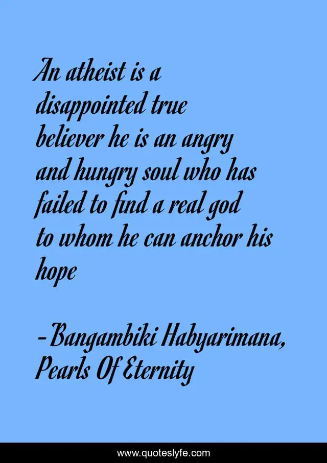 "Bangambiki Habyarimana, Pearls Of Eternity Quotes." Quoteslyfe.com, 2025. Mon. 08 Dec. 2025. <https://www.quoteslyfe.com/quote/An-atheist-is-a-disappointed-true-believer-44573>.
