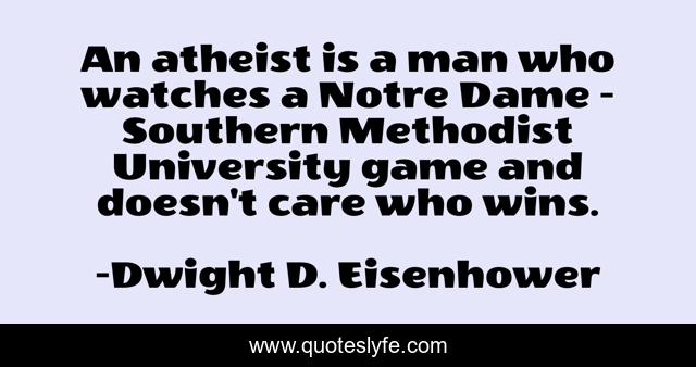 This page presents the quote "An atheist is a man who watches a Notre Dame - Southern Methodist University game and doesn't care who wins.". Author of this quote is Dwight D. Eisenhower. This quote is about football, aetheism, sports,.