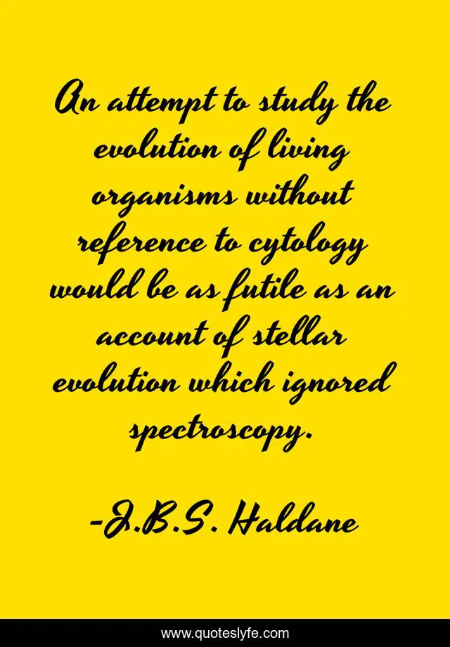 This page presents the quote "An attempt to study the evolution of living organisms without reference to cytology would be as futile as an account of stellar evolution which ignored spectroscopy.". Author of this quote is J.B.S. Haldane. This quote is about biology, cytology, evolution, science, study, stellar-evolution, futile, spectroscopy, astronomy,.