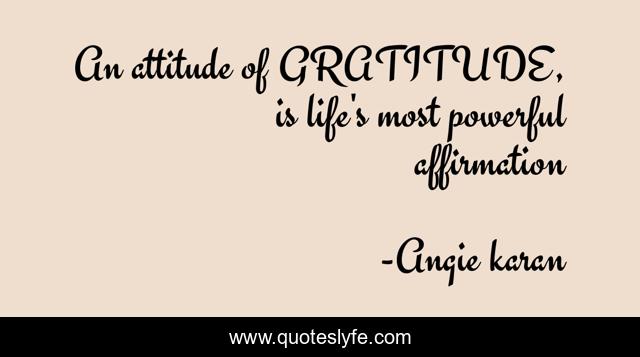 "Angie karan Quotes." Quoteslyfe.com, 2025. Fri. 05 Dec. 2025. <https://www.quoteslyfe.com/quote/An-attitude-of-GRATITUDE-is-life-s-179765>.