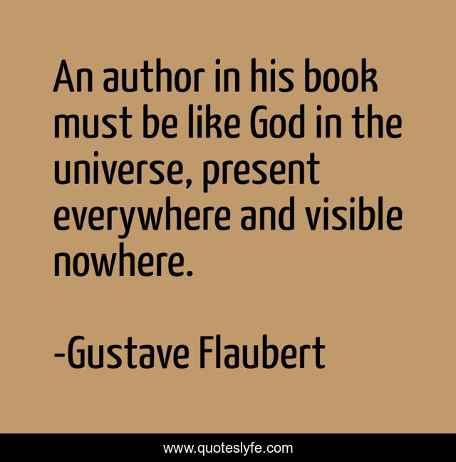 This page presents the quote "An author in his book must be like God in the universe, present everywhere and visible nowhere.". Author of this quote is Gustave Flaubert. .