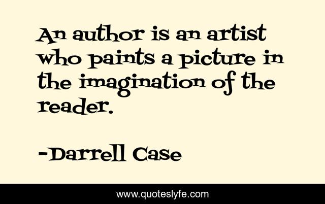 This page presents the quote "An author is an artist who paints a picture in the imagination of the reader.". Author of this quote is Darrell Case. This quote is about writer, author, reader,.