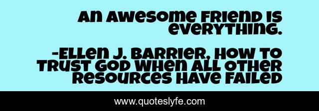 "Ellen J. Barrier, How to Trust God When All Other Resources Have Failed Quotes." Quoteslyfe.com, 2025. Sat. 06 Dec. 2025. <https://www.quoteslyfe.com/quote/An-awesome-friend-is-everything-120705>.