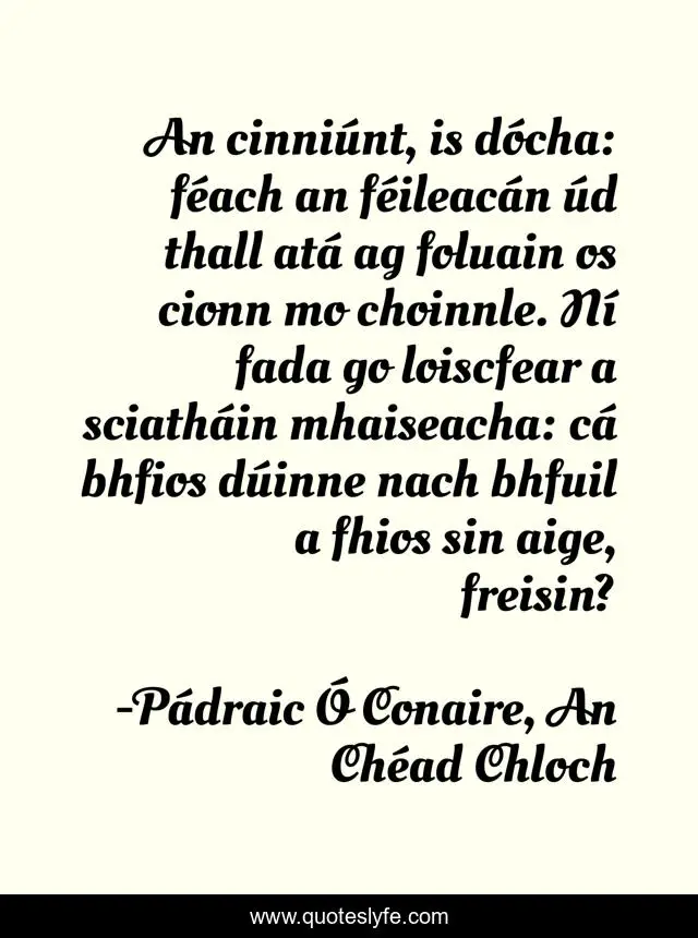 "Pádraic Ó Conaire, An Chéad Chloch Quotes." Quoteslyfe.com, 2025. Fri. 05 Dec. 2025. <https://www.quoteslyfe.com/quote/An-cinni-nt-is-d-cha-f-153627>.