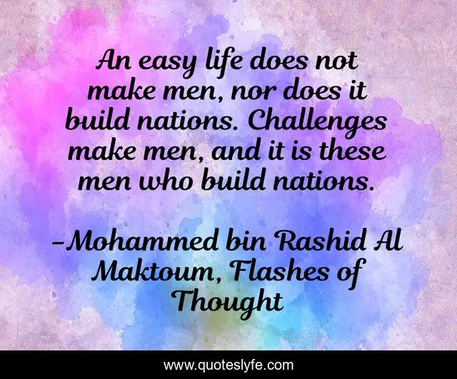"Mohammed bin Rashid Al Maktoum, Flashes of Thought Quotes." Quoteslyfe.com, 2025. Sat. 06 Dec. 2025. <https://www.quoteslyfe.com/quote/An-easy-life-does-not-make-men-253168>.