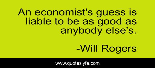 This page presents the quote "An economist's guess is liable to be as good as anybody else's.". Author of this quote is Will Rogers. This quote is about guess, good, economist,.