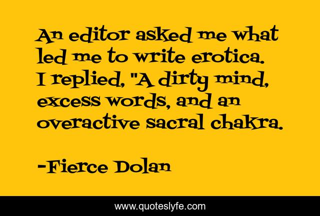 This page presents the quote "An editor asked me what led me to write erotica. I replied, "A dirty mind, excess words, and an overactive sacral chakra.". Author of this quote is Fierce Dolan. This quote is about erotica, chakras,.
