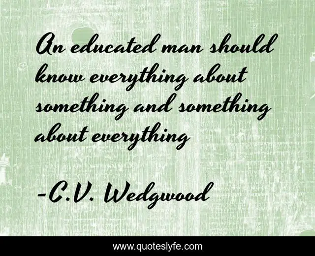 "C.V. Wedgwood Quotes." Quoteslyfe.com, 2025. Fri. 05 Dec. 2025. <https://www.quoteslyfe.com/quote/An-educated-man-should-know-everything-about-30606>.