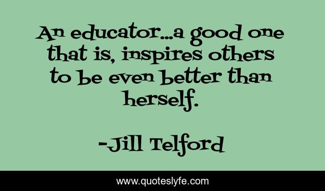 This page presents the quote "An educator...a good one that is, inspires others to be even better than herself.". Author of this quote is Jill Telford. This quote is about education, social-justice, change, issues, reform,.