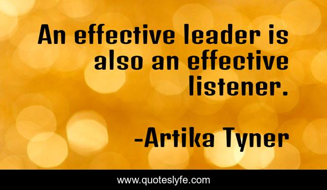 This page presents the quote "An effective leader is also an effective listener.". Author of this quote is Artika Tyner. This quote is about management, listening-skills, leadership,.