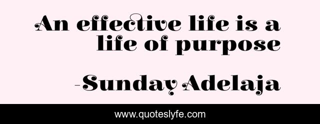 This page presents the quote "An effective life is a life of purpose". Author of this quote is Sunday Adelaja. This quote is about love, people, money, principles, selflessness, employment, worship, impact, living,.