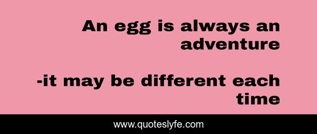 "it may be different each time Quotes." Quoteslyfe.com, 2025. Sat. 06 Dec. 2025. <https://www.quoteslyfe.com/quote/An-egg-is-always-an-adventure-149503>.