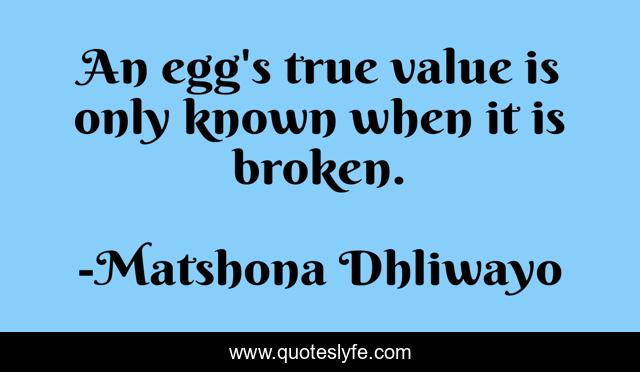 "Matshona Dhliwayo Quotes." Quoteslyfe.com, 2025. Sat. 06 Dec. 2025. <https://www.quoteslyfe.com/quote/An-egg-s-true-value-is-only-83652>.
