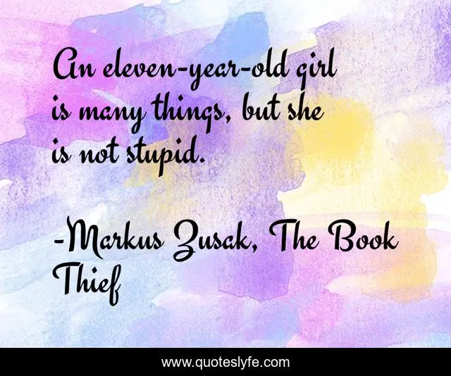 This page presents the quote "An eleven-year-old girl is many things, but she is not stupid.". Author of this quote is Markus Zusak, The Book Thief. This quote is about stupidity, girls,.