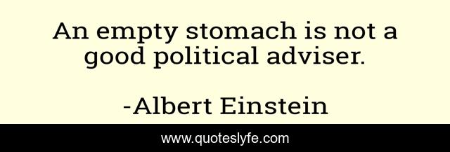 This page presents the quote "An empty stomach is not a good political adviser.". Author of this quote is Albert Einstein. This quote is about humor, poverty, hunger,.
