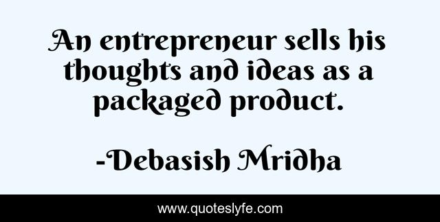 This page presents the quote "An entrepreneur sells his thoughts and ideas as a packaged product.". Author of this quote is Debasish Mridha. This quote is about entrepreneur, sell-your-ideas, philosophy, debasish-mridha, thoughts-and-ideas, quotes, debasish-mridha-md, inspirational, enthusiasm,.