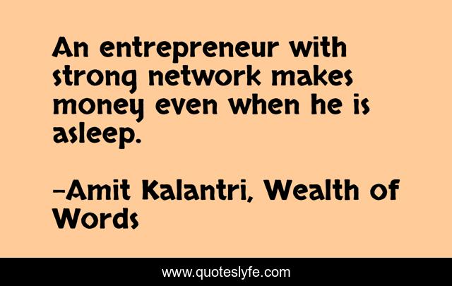 "Amit Kalantri, Wealth of Words Quotes." Quoteslyfe.com, 2025. Mon. 08 Dec. 2025. <https://www.quoteslyfe.com/quote/An-entrepreneur-with-strong-network-makes-money-13563>.