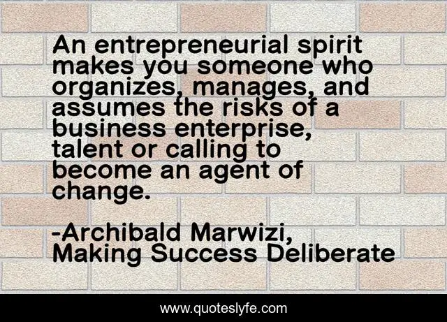 "Archibald Marwizi, Making Success Deliberate Quotes." Quoteslyfe.com, 2025. Sat. 06 Dec. 2025. <https://www.quoteslyfe.com/quote/An-entrepreneurial-spirit-makes-you-someone-who-109321>.