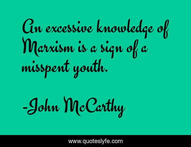 This page presents the quote "An excessive knowledge of Marxism is a sign of a misspent youth.". Author of this quote is John McCarthy. This quote is about youth, marxism, sign,.