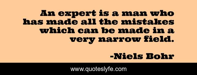 This page presents the quote "An expert is a man who has made all the mistakes which can be made in a very narrow field.". Author of this quote is Niels Bohr. This quote is about ability, achievement,.
