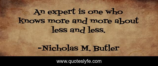 This page presents the quote "An expert is one who knows more and more about less and less.". Author of this quote is Nicholas M. Butler. .