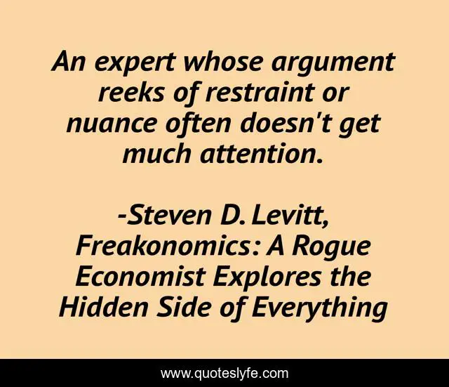 "Steven D. Levitt, Freakonomics: A Rogue Economist Explores the Hidden Side of Everything Quotes." Quoteslyfe.com, 2025. Fri. 05 Dec. 2025. <https://www.quoteslyfe.com/quote/An-expert-whose-argument-reeks-of-restraint-209860>.