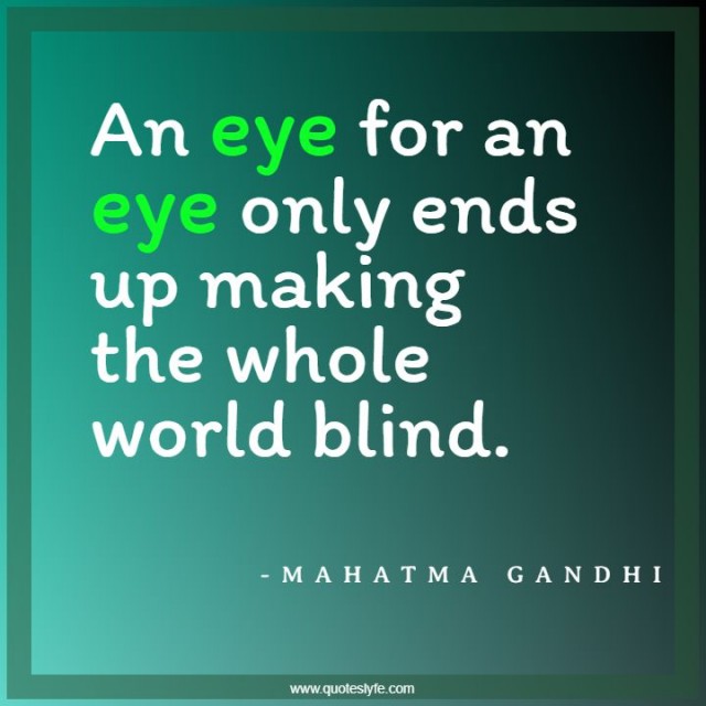 "Mahatma Gandhi Quotes." Quoteslyfe.com, 2026. Tue. 13 Jan. 2026. <https://www.quoteslyfe.com/quote/An-eye-for-an-eye-only-ends-323358>.