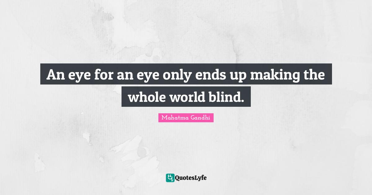 This page presents the quote "An eye for an eye only ends up making the whole world blind.". Author of this quote is Mahatma Gandhi. This quote is about blind, world, eye,.