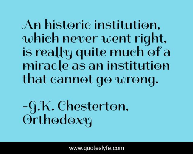 "G.K. Chesterton, Orthodoxy Quotes." Quoteslyfe.com, 2025. Sat. 06 Dec. 2025. <https://www.quoteslyfe.com/quote/An-historic-institution-which-never-went-right-193629>.