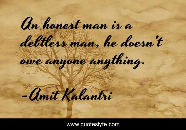 "Amit Kalantri Quotes." Quoteslyfe.com, 2025. Fri. 05 Dec. 2025. <https://www.quoteslyfe.com/quote/An-honest-man-is-a-debtless-man-166192>.