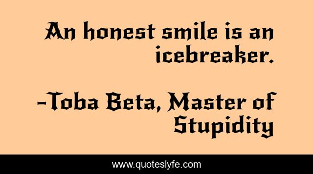 "Toba Beta, Master of Stupidity Quotes." Quoteslyfe.com, 2025. Mon. 08 Dec. 2025. <https://www.quoteslyfe.com/quote/An-honest-smile-is-an-icebreaker-194772>.