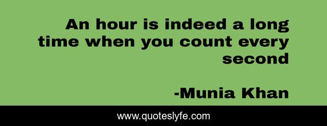 This page presents the quote "An hour is indeed a long time when you count every second". Author of this quote is Munia Khan. This quote is about count, wise-words, wise, hour, seconds, indeed, long, times, hours,.
