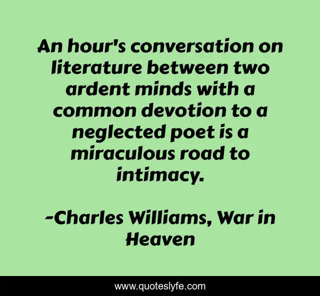 "Charles Williams, War in Heaven Quotes." Quoteslyfe.com, 2025. Fri. 05 Dec. 2025. <https://www.quoteslyfe.com/quote/An-hour-s-conversation-on-literature-between-50520>.