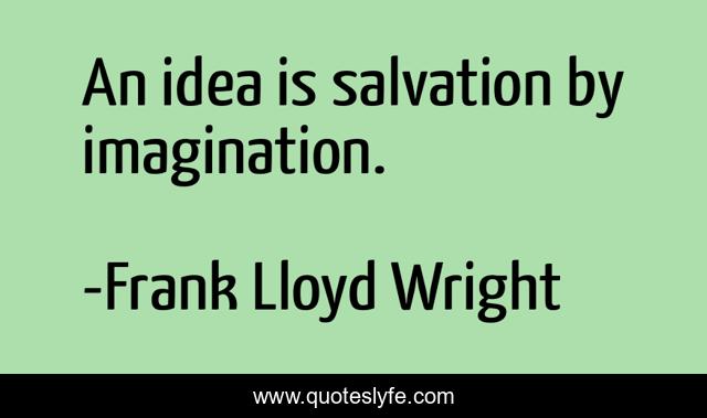 This page presents the quote "An idea is salvation by imagination.". Author of this quote is Frank Lloyd Wright. This quote is about salvation, idea,.