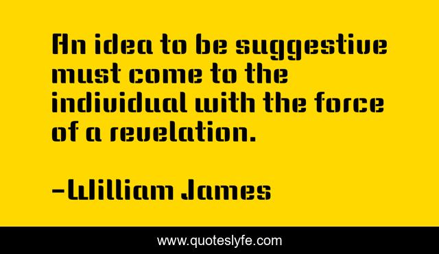 This page presents the quote "An idea to be suggestive must come to the individual with the force of a revelation.". Author of this quote is William James. .