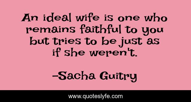 This page presents the quote "An ideal wife is one who remains faithful to you but tries to be just as if she weren't.". Author of this quote is Sacha Guitry. .