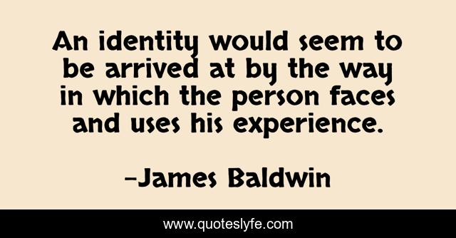 This page presents the quote "An identity would seem to be arrived at by the way in which the person faces and uses his experience.". Author of this quote is James Baldwin. This quote is about person, identity, way,.
