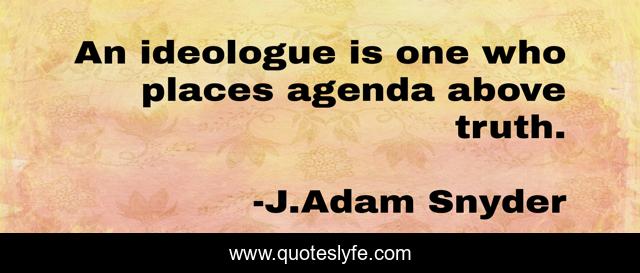 This page presents the quote "An ideologue is one who places agenda above truth.". Author of this quote is J.Adam Snyder. This quote is about agendas, ideologies, religion, truth, politics, j-adam-snyder,.