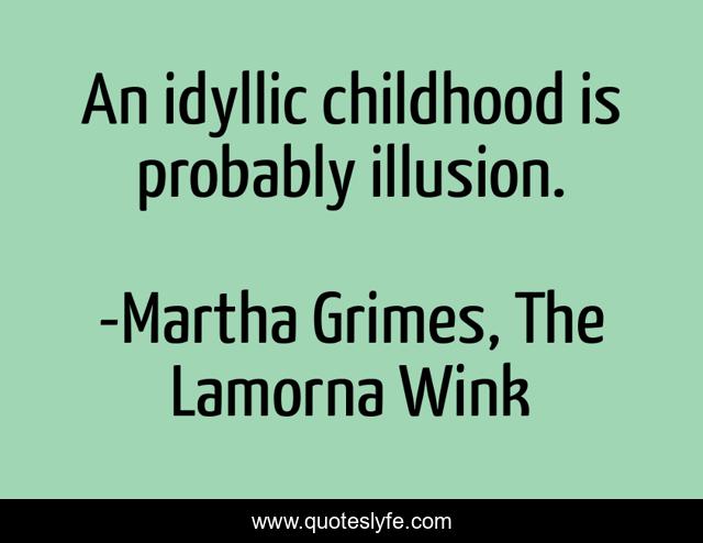 "Martha Grimes, The Lamorna Wink Quotes." Quoteslyfe.com, 2025. Sat. 06 Dec. 2025. <https://www.quoteslyfe.com/quote/An-idyllic-childhood-is-probably-illusion-190807>.