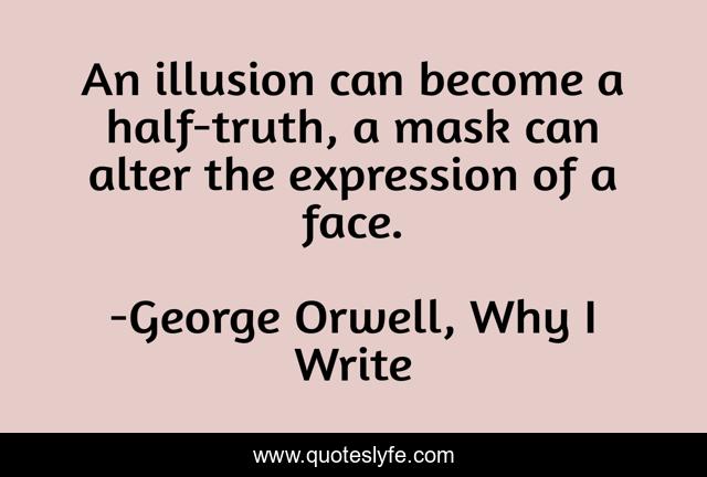 This page presents the quote "An illusion can become a half-truth, a mask can alter the expression of a face.". Author of this quote is George Orwell, Why I Write. This quote is about identity, self, illusion, truth,.